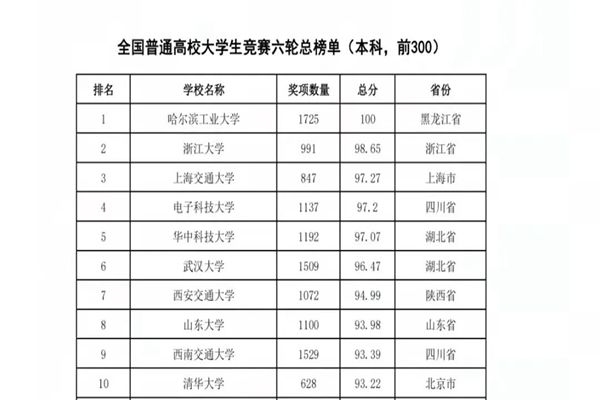 哈爾濱工業(yè)大學(xué)連續(xù)三年獲得全國(guó)普通高校大學(xué)生競(jìng)賽榜單冠軍