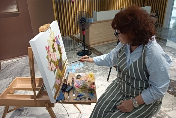 俄羅斯著名油畫(huà)家到哈爾濱綜合保稅區(qū)俄羅斯文化展館參觀