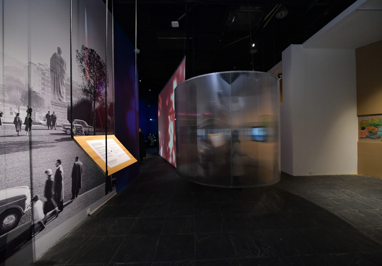 空間與空間的交疊、空間中的空間以作品圖像、檔案重建與場景搭建等形式,散落于展覽的各個角落之中。陳淑瑜在開幕式的視頻致辭中提到:“展覽是關(guān)于藝術(shù)作品看不見的本質(zhì),是我們用藝術(shù)作品可見的實(shí)體部分去建構(gòu)展覽的空間,去容納內(nèi)心不可見的部分。對我來說,這是展覽的意義,也是展覽的開始。”[8]