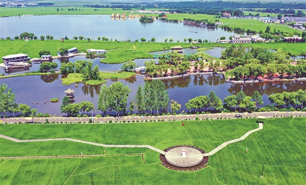隱藏在綠水田中的大慶市林甸縣四合鄉(xiāng)聯(lián)合村,是一幅移步換景的畫卷,廣闊無垠的草原,鮮花、野草點綴其間,繪就出這里獨具個性魅力的濕地原生態(tài)景觀。采摘、騎車、釣魚,或閉上眼睛靜聽四周的鳥鳴聲、田邊的流水聲以及青禾的搖曳聲,放松又解壓。
