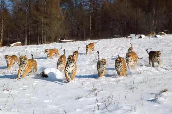 令人震撼的鏡泊湖吊水樓的冰瀑是牡丹江冬季的重要景點之一。在冰凌交錯、銀裝素裹的純凈世界里,世界吉尼斯紀(jì)錄創(chuàng)造者——中國懸崖跳水奇人狄煥然,在零下二十多度的鏡泊湖吊水樓冰瀑上,伸展雙臂,凌空一躍,撲向不結(jié)冰的黑龍?zhí)端?,跳入落差?0米的水中,成為鏡泊湖景區(qū)冬季的一道獨特景觀。鏡泊湖水系水質(zhì)較好,水產(chǎn)資源極為豐富,大約有六十多種魚,冬季體驗鏡泊湖的大網(wǎng)捕魚、小網(wǎng)掛魚,在每年辭舊迎新之際看一場冬捕,絕對是預(yù)示著年年有余好兆頭的絕佳體驗。在漁夫們高亢的號子聲中,800多米長的大網(wǎng)從冰洞中漸漸滑出,胖頭魚、鯽魚、鯉魚等翻滾著、跳躍著,冒著熱氣蹦到冰面,“萬尾鮮魚出玉門”的奇觀景象讓人感嘆不已。橫道東北虎林園是世界上最大的東北虎人工飼養(yǎng)繁育基地和野化訓(xùn)練基地。在幾代養(yǎng)虎人的辛勤努力下,已繁育活體東北虎1100余只,建有猛虎園、靈長類館、幼虎生態(tài)館、高空玻璃棧道、珍稀動物觀賞園、科普展覽館、觀虎長廊、虎文化廣場等多個景點。在這里,可以感受到獸中之王奔跑在蒼茫林海雪原的風(fēng)馳電掣。也可以感受到成群東北虎躺臥在皚皚白雪“互談心事”的百般愜意,還可以領(lǐng)略到虎牛相斗、群虎撲食的驚險刺激。