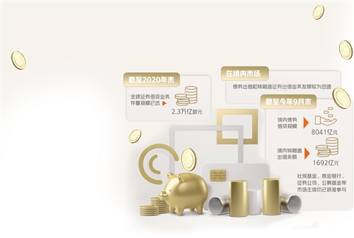 證券出借業(yè)務俗稱“融券”,是境內(nèi)外資本市場提高二級市場流動性的常見交易制度,發(fā)展較為成熟。截至2020年末,全球證券借貸業(yè)務存量規(guī)模已達2.3萬億歐元。在境內(nèi)市場,債券出借和轉(zhuǎn)融通證券出借業(yè)務發(fā)展較為迅速,截至今年9月末,境內(nèi)債券借貸規(guī)模8041億元,境內(nèi)轉(zhuǎn)融通出借余額1692億元,社?;稹⑸虡I(yè)銀行、證券公司、公募基金等市場主體均已獲準參與。