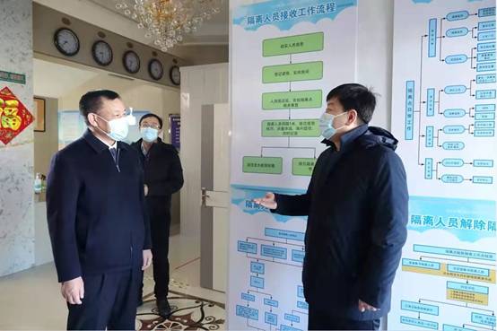 在縣內(nèi)備用隔離賓館,孫亮通過走流程的形式詳細了解了隔離賓館“三區(qū)兩通道”的設(shè)置情況以及各隔離賓館的基本情況,聽取了在隔離期間對隔離人員的管理情況,向在隔離期間堅守崗位的工作人員表示感謝,同時叮囑相關(guān)負責人,要嚴格執(zhí)行防疫措施和要求,做好隔離人員的心理疏導,堅決封堵隔離管理的漏洞。