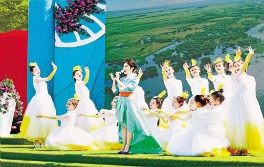 主席臺(tái)上的大屏幕里播放著主題宣傳片《地球的伊春》,畫面中一幀幀滾動(dòng)著的藍(lán)天白云、青山綠水、自然風(fēng)光和人文景觀,淋漓盡致地展現(xiàn)著林都伊春“森林里的家”的豐顏秀色,成為大美伊春在初夏時(shí)節(jié)向全國(guó)人民送出的生態(tài)大禮。