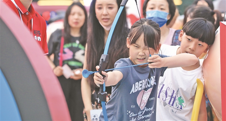 隨著全國各地中小學(xué)暑期的來臨,時(shí)下,位于哈爾濱市道里區(qū)的建筑藝術(shù)廣場上,親子游的家庭明顯增多。除了旅拍,孩子們還熱衷于喂鴿子、坐木馬、射箭、乘小火車,暢享“爾濱”夏日清涼。