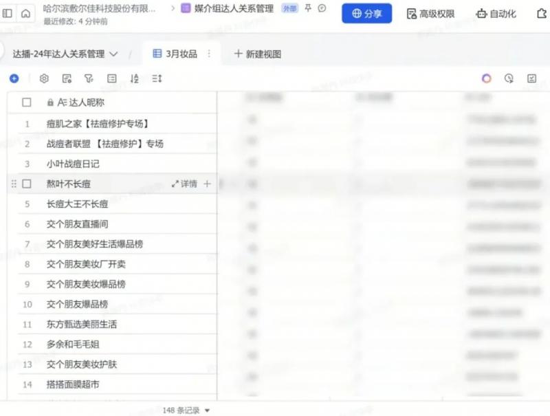 由于器械字號(hào)產(chǎn)品的特殊性,現(xiàn)在敷爾佳通過(guò)飛書(shū)在線文檔審批達(dá)人,將達(dá)人數(shù)據(jù)填寫上報(bào),上級(jí)在線同步審批達(dá)人,跟進(jìn)確定合作。直播中,用飛書(shū)云盤儲(chǔ)存資料,將達(dá)播錄屏,產(chǎn)品資料等數(shù)據(jù),同步云盤,方便各部門查看,調(diào)取相關(guān)資料。直播后,利用飛書(shū)多維表格將達(dá)人信息,合作傭金,產(chǎn)出 GMV,對(duì)接人等重要信息歸攏一起,形成多維表格方便組織內(nèi)互相查閱填寫, 通過(guò)儀表盤的功能體現(xiàn)出哪些達(dá)人是優(yōu)質(zhì)合作達(dá)人,并為二次投放合作提供了參考價(jià)值。