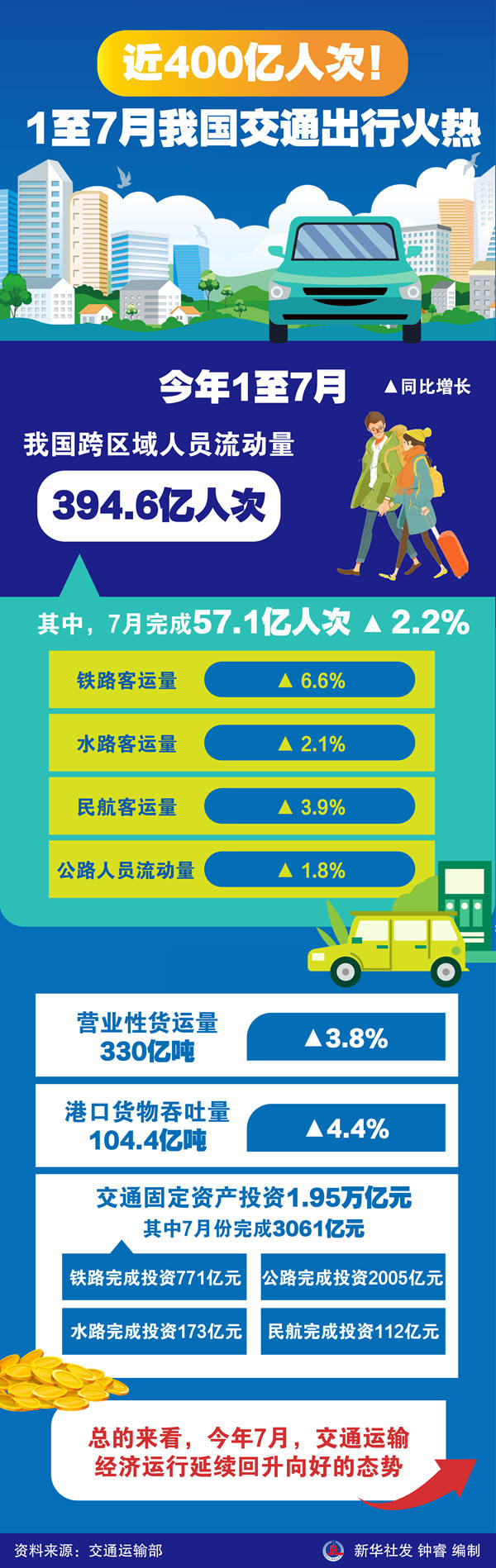 “總的來看,今年7月,交通運(yùn)輸經(jīng)濟(jì)運(yùn)行延續(xù)回升向好的態(tài)勢?!崩罘f說。