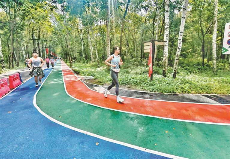 一位在這里跑步的附近居民說,林間空氣清新,負氧離子含量高,對人體有很大益處。一邊跑步健身,一邊觀賞林間美景,感覺舒服又愜意。