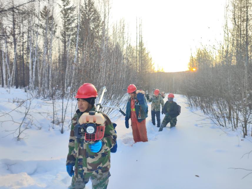 規(guī)范操作不松懈,筑牢安全“防護(hù)墻”。在各營林作業(yè)現(xiàn)場,寒風(fēng)凜冽卻擋不住職工們的工作熱情。大家嚴(yán)格遵守冬季營林作業(yè)規(guī)程,統(tǒng)一佩戴安全帽穿梭在林間,有條不紊地開展林木修枝、病腐木清理、林地?fù)嵊裙ぷ?。油鋸手?yán)格執(zhí)行“先檢查、再啟動、穩(wěn)操作”的流程,精準(zhǔn)把控作業(yè)角度;撫育隊員踩著厚雪,手持工具對林間枯死木、被壓木及對目的樹種生長存在影響的進(jìn)行有序清理、歸堆。從器械檢查到流程落實,每一個環(huán)節(jié)都嚴(yán)謹(jǐn)規(guī)范,安全帽上的反光條在皚皚白雪中格外醒目,成為林海間一道守護(hù)安全的風(fēng)景線。