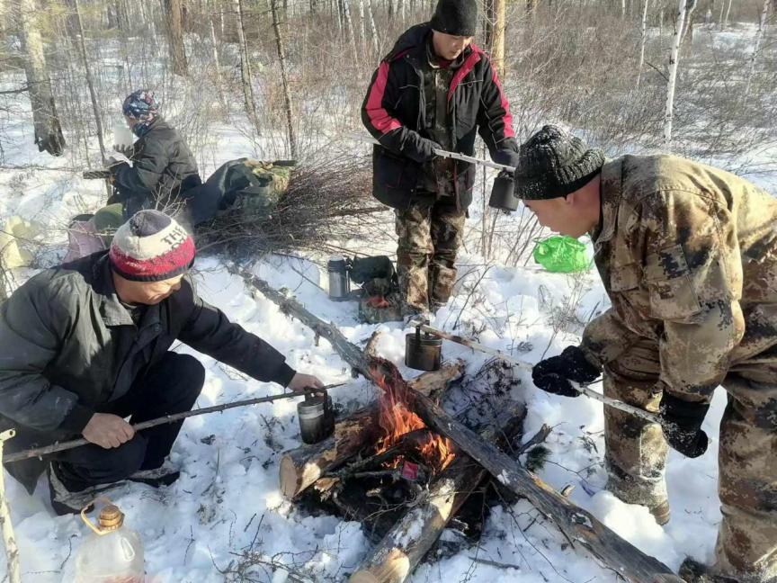 餐風(fēng)飲雪不言苦,苦中作樂顯擔(dān)當(dāng)。正午時分,忙碌的作業(yè)暫告一段落,林間背風(fēng)處便成了臨時“餐桌”。職工們聚在一起,圍坐在火堆旁,就著寒風(fēng),分享著熱氣騰騰的盒飯。沒有舒適的就餐環(huán)境,只有白雪皚皚的林海作伴;沒有豐盛的佳肴,只有簡單的飯菜暖胃暖心。大家邊吃邊聊,交流著當(dāng)天的作業(yè)進(jìn)度,分享著林區(qū)里的新鮮事,爽朗的笑聲回蕩在林間。艱苦的條件絲毫沒有消減大家的干勁,反而凝聚起攻堅克難的強大合力,這便是育英林場人獨有的“苦中作樂”,更是對綠水青山的執(zhí)著堅守。