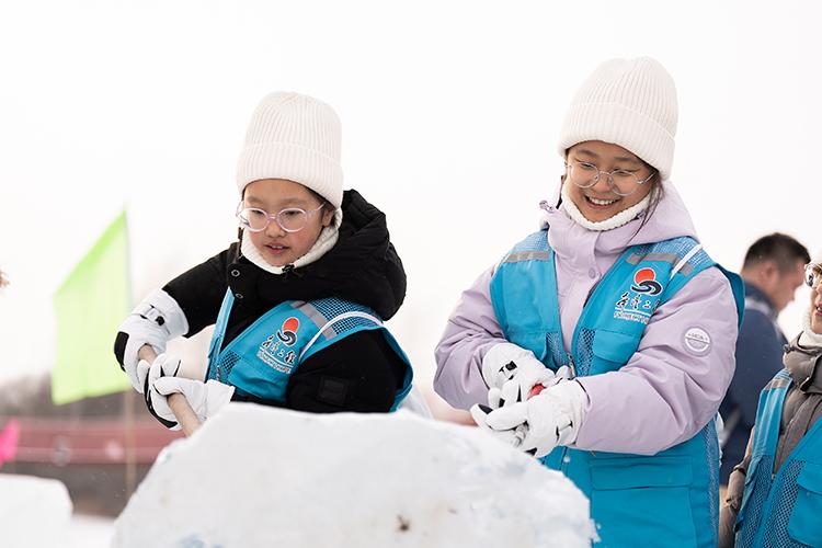 孩子們拿起雪鏟自己動(dòng)手進(jìn)行冰雕