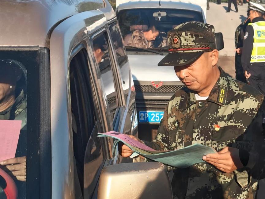 林業(yè)局工作人員在查看入山采集人員的采集證等信息(張凱強(qiáng) 攝)