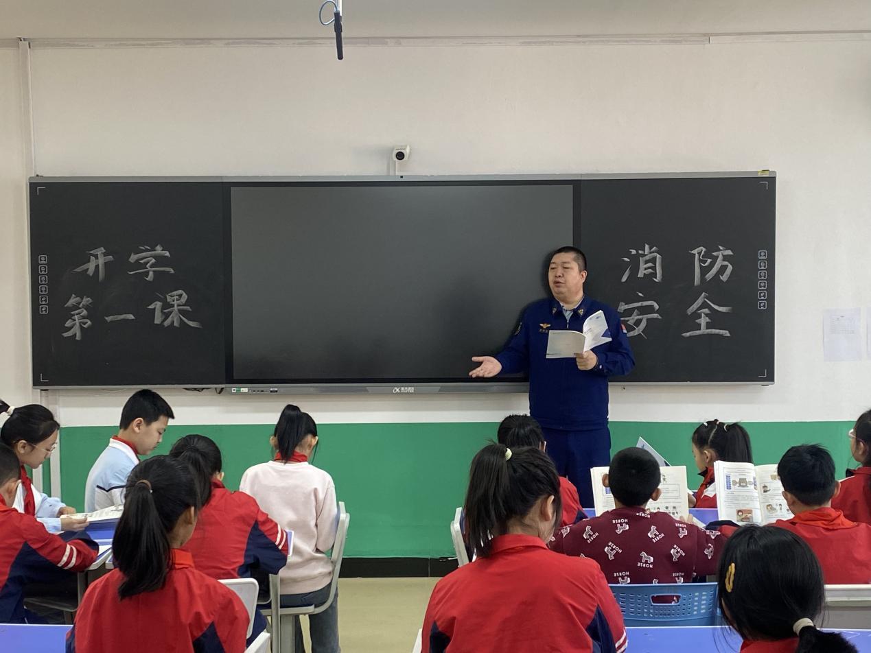 消防宣傳員在課堂上講解《中小學(xué)生消防安全讀本》中的消防安全常識(shí)(胡春磊 攝)