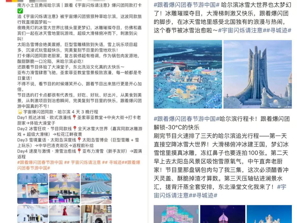 近日,愛奇藝《宇宙閃爍請注意》發(fā)起“跟著爆閃團春節(jié)游中國”打卡活動,不僅為哈爾濱春節(jié)冰雪旅游注入全新活力,更以節(jié)目同款體驗豐富了游客的游玩感受,目前相關活動話題閱讀量已突破800萬。