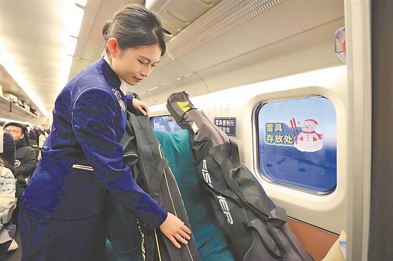 實(shí)行雪具便利行服務(wù),雪具在動(dòng)車組上也有了專屬“座位”。徐率攝