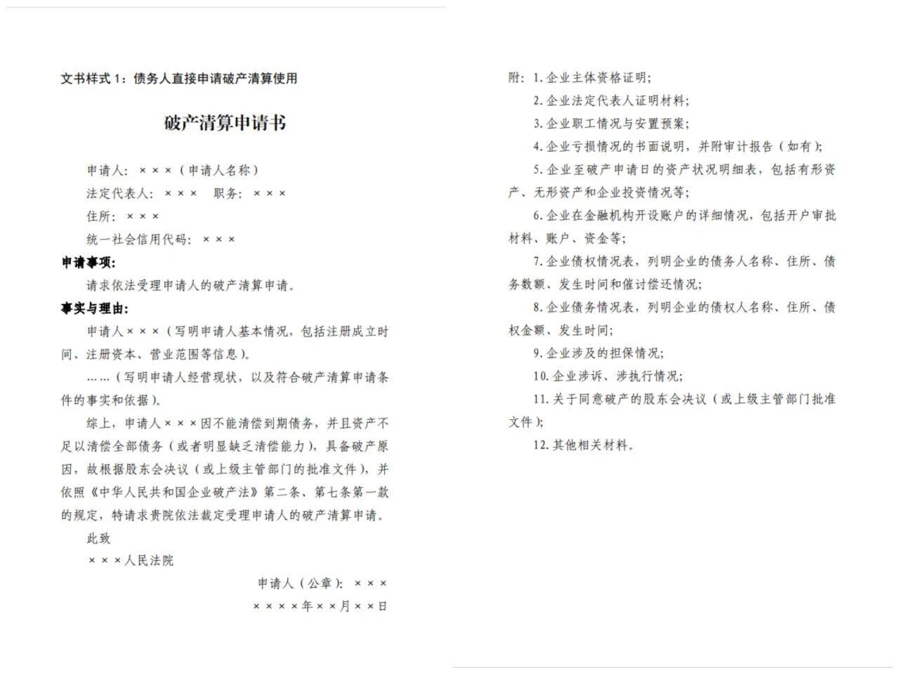 當(dāng)事人可對照范本直接填寫,有效解決因不熟悉文書格式導(dǎo)致的信息不全、表述不規(guī)范等問題,大幅降低破產(chǎn)申請門檻與準(zhǔn)備成本。
