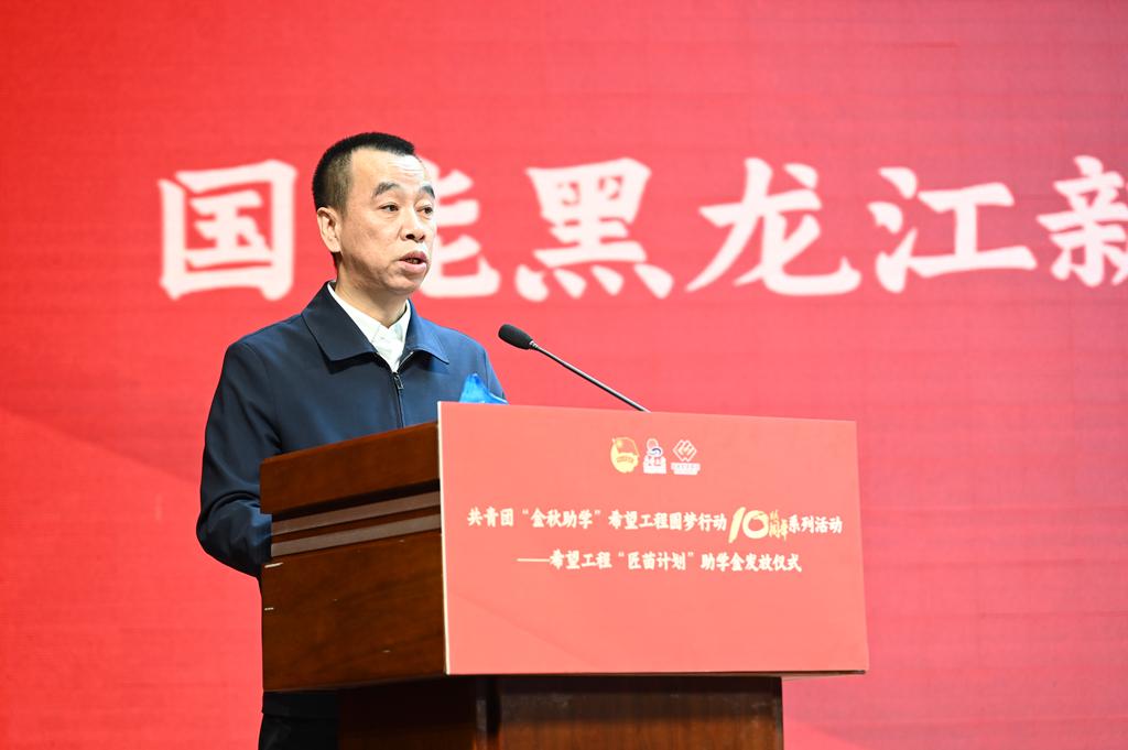 國能黑龍江新能源有限公司黨委書記、執(zhí)行董事遲鳳亮發(fā)言。他表示:“履行央企社會責(zé)任、傳遞社會溫暖是企業(yè)的初心與擔(dān)當(dāng),未來,國能黑龍江新能源有限公司將繼續(xù)踐行央企責(zé)任,一如既往地支持希望工程事業(yè),關(guān)注青年成長,與社會各界一道,共同為龍江全面振興全方位振興貢獻(xiàn)力量?!?/span>