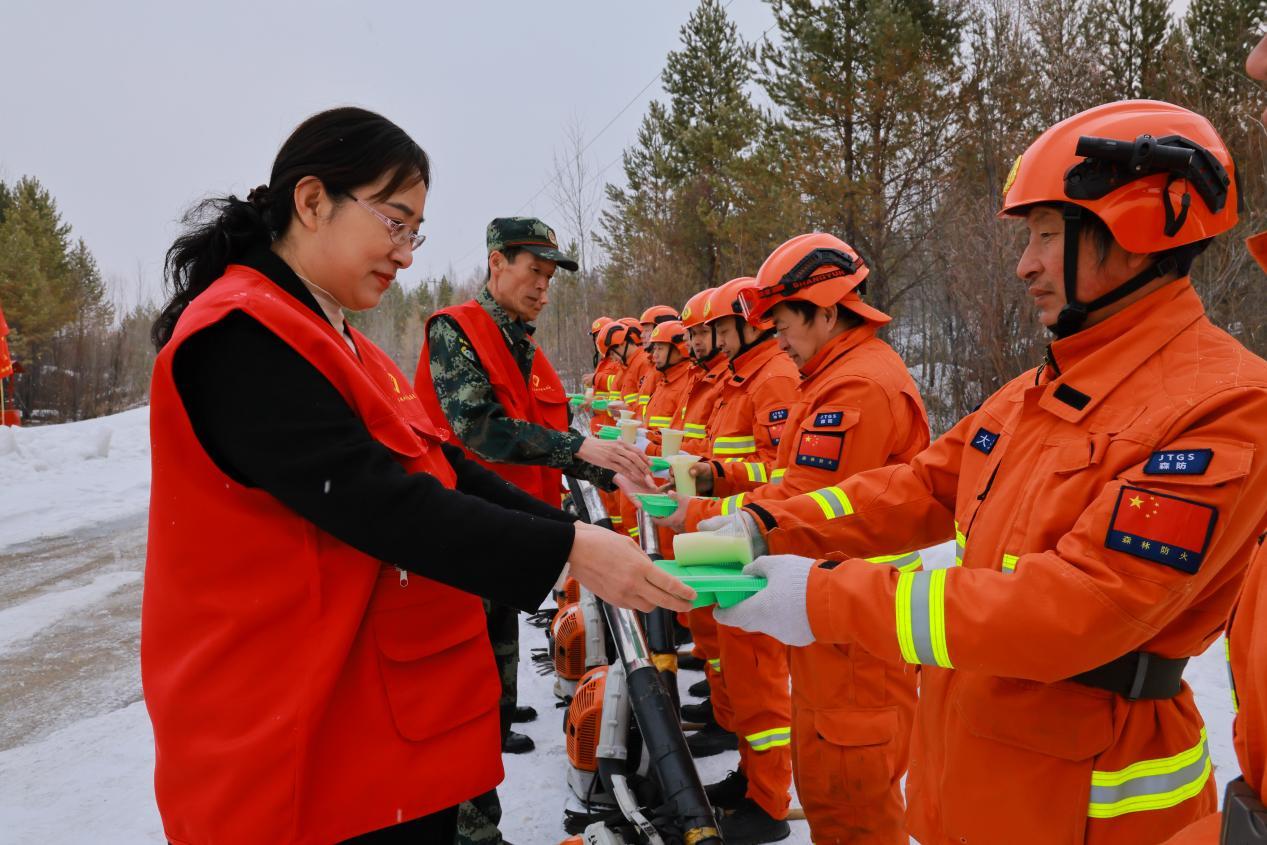 一線人員堅(jiān)守崗位、不辭辛勞,后方保障溫暖人心、鼓舞斗志。在森林衛(wèi)士們奮戰(zhàn)一線的同時(shí),林業(yè)局機(jī)關(guān)黨委積極行動(dòng),以主題黨日活動(dòng)為載體,組織干部職工化身志愿者,將熱氣騰騰的餃子和豆?jié){送到一線值守人員手中,暖心的慰問(wèn)與貼心的保障,讓堅(jiān)守在崗位上的“森林衛(wèi)士”倍感溫暖,極大地提振了隊(duì)伍士氣。森林消防一大隊(duì)隊(duì)員梁光輝感動(dòng)地說(shuō)道:“感謝局領(lǐng)導(dǎo)的關(guān)愛(ài),我們心里特別溫暖。清明有我們?cè)趰?,一定全力以赴,?jiān)決打贏平安清明戰(zhàn)役!”