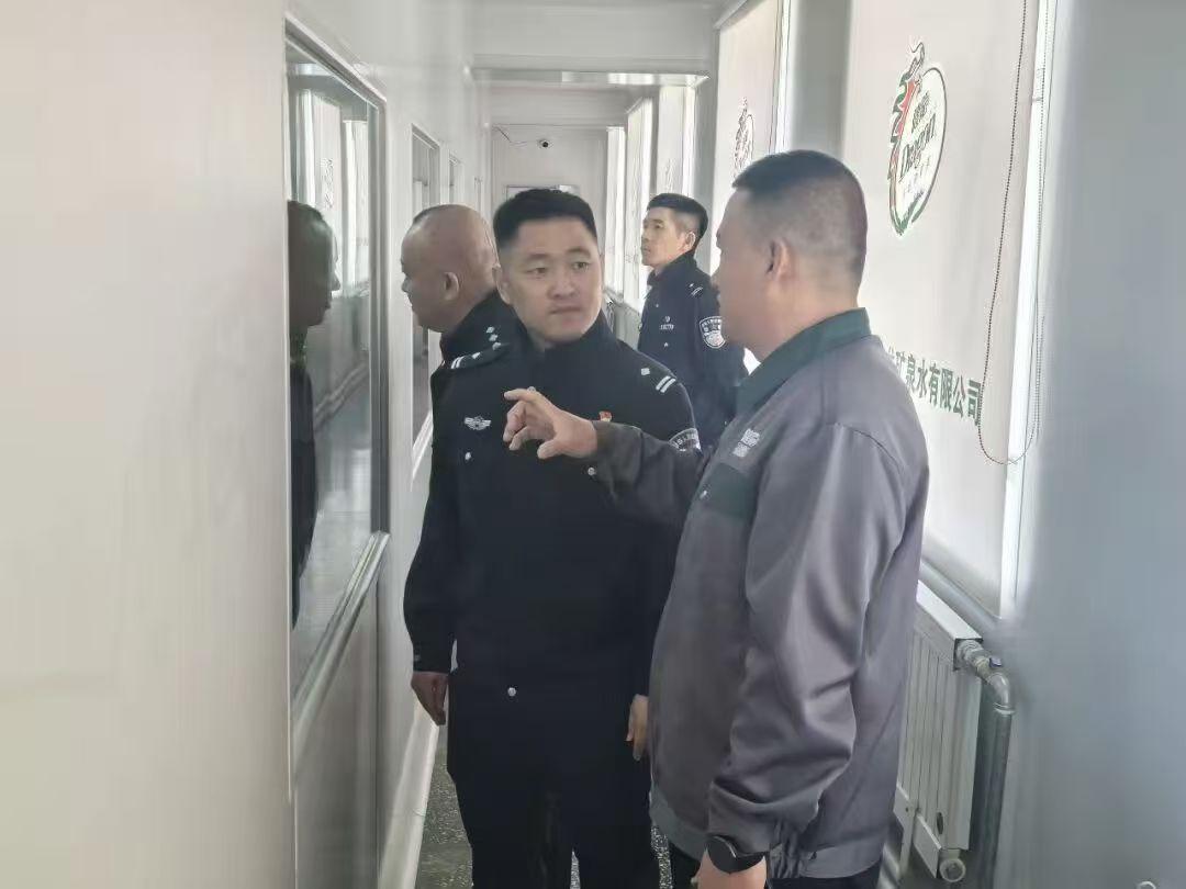 趙宇一行前往健龍礦泉水生產(chǎn)企業(yè),實(shí)地查看企業(yè)生產(chǎn)經(jīng)營、內(nèi)部安保、消防安全等工作落實(shí)情況,詳細(xì)了解企業(yè)日常運(yùn)營中面臨的治安隱患、矛盾糾紛、安全管理等實(shí)際問題。藥泉派出所所長立足崗位職責(zé),圍繞企業(yè)周邊治安防控、涉企警情處置、安全生產(chǎn)監(jiān)管、反詐宣傳、員工法治教育等工作,與企業(yè)負(fù)責(zé)人進(jìn)行深入溝通交流,現(xiàn)場解答企業(yè)提出的各類政務(wù)咨詢、回應(yīng)問題訴求。